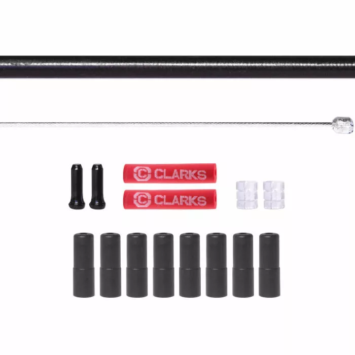 Dette sæt kabler i rustfrit stål fra Clarks består af 2 universelle gearkabler, 8 geartyller og leveres med 4 stelbeskyttere i gummi til at reducere slitage på kronrør.