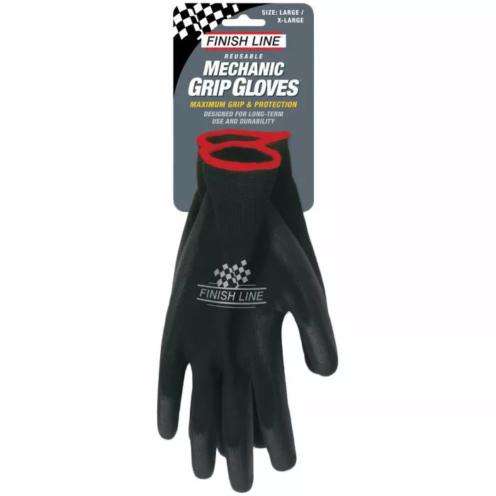 Designed for long-term use and durability, the Finish Line Mechanic Grip Gloves™ provide the ultimate in grip, protection, and dexterity. These reusable gloves make it easier to work on small, precision bike parts.