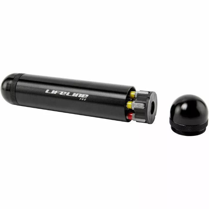 The LifeLine Pro Ratchet Stash comes with a T-Bar Ratchet Tool and six tool bits (4/5/6mm Hex; T25/T30 torx bit; PH2 screwdriver head) that will help you tighten loose bolts and screws on your ride.