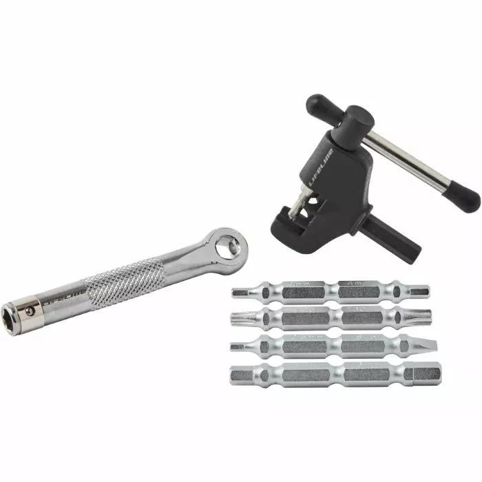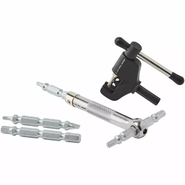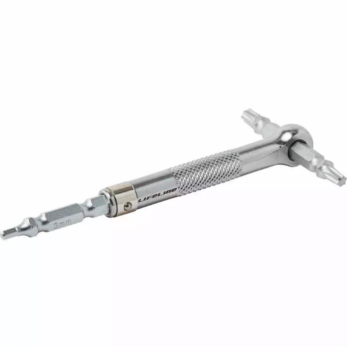 The LifeLine Switchit Keys reinvent the multitool. A handy tool to take on the trails or stuff in your jersey pocket. Includes a 2.5, 3,4,5,6mm allen key head plus T25 and T30 Torx, ST5 flat head and chain breaker.