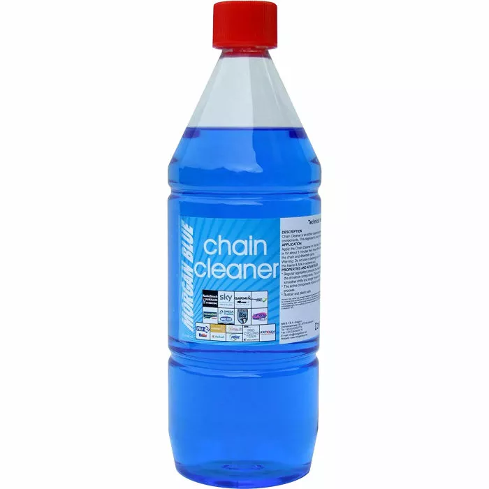 Apply the Chain Cleaner on the chain, the front and rear derailleurs. Let the cleaner soak in for about 5 minutes then rinse off with soapy water. Rub with a dry cloth then re-lubricate the chain and drivetrain parts. Warning: Do not use on bearings and do not use Chain Cleaner on the frame & fork in extreme sun. Morgan Blue has the most complete range of maintenance products, including a complete massage line, which many of the continental Pro Teams use.