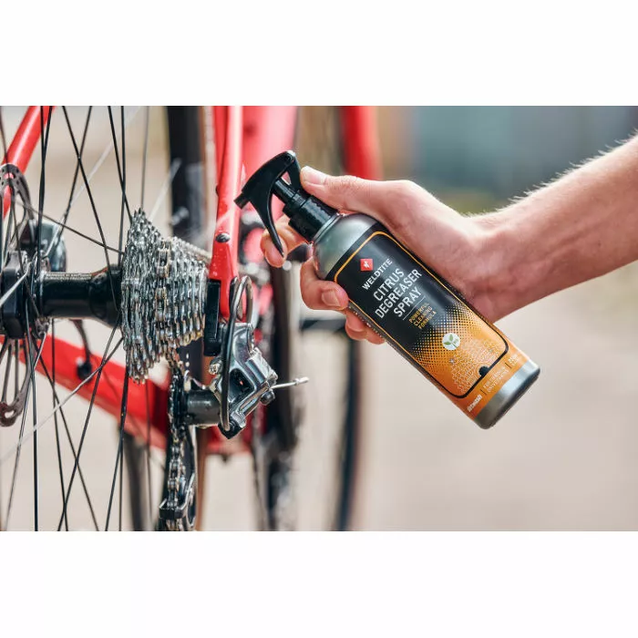 Weldtites Citrus affedningsmiddel er et supereffektivt valg til rengøring og affedtning af din cykels kæde og drivlinjekomponenter.