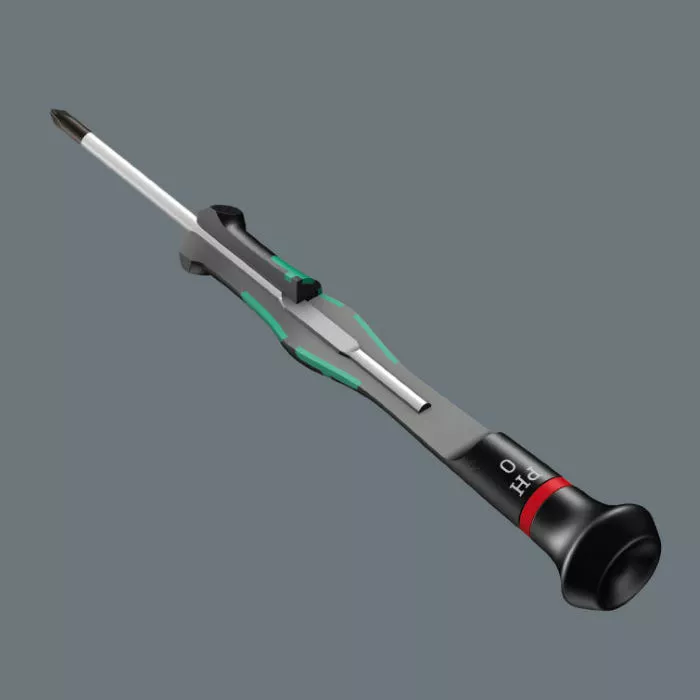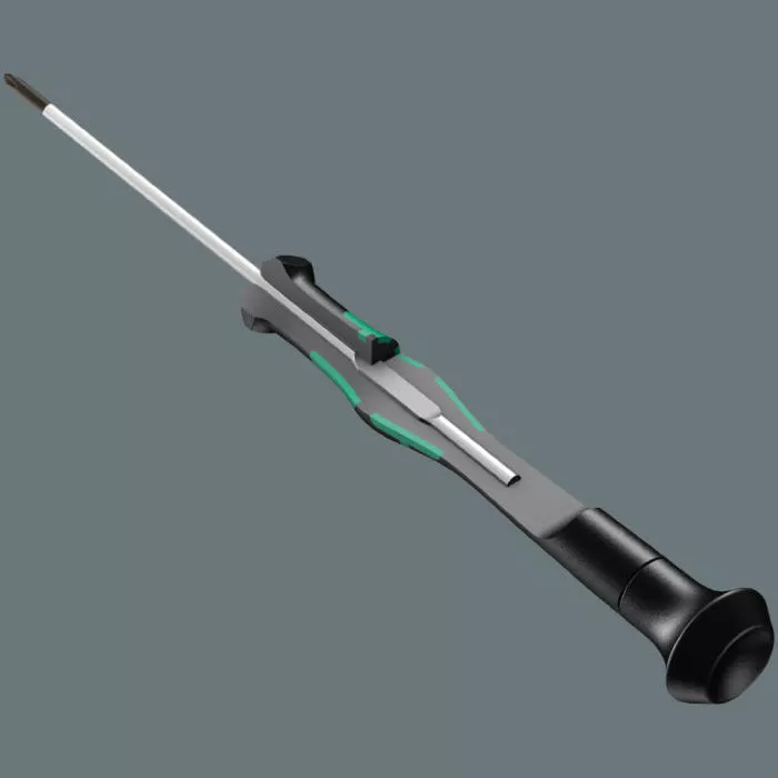 Ideal for fine-tuning small screw fittings and they feature a rotating cap so you can keep rotating without removing pressure on the screw. The Wera Micro screwdriver set for fine mechanical screw connections. By supporting the hand on the rotating cap, and by the fast-rotating zone below the rotating cap, lightning-fast turning is possible.